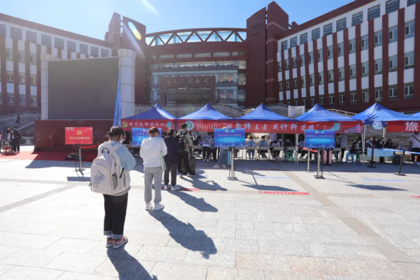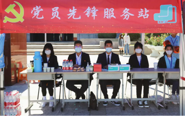 我院设立青年志愿者服务站,帮助新生答疑解惑、带领新生办理入学登记。